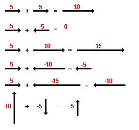 همونطور که دیده میشه برای دو بردار همجهت اندازه هاشون رو با هم جمع می کنیم و بری دو بردار خلاف جهت، اندازه هاشون رو از هم کم می کنیم.