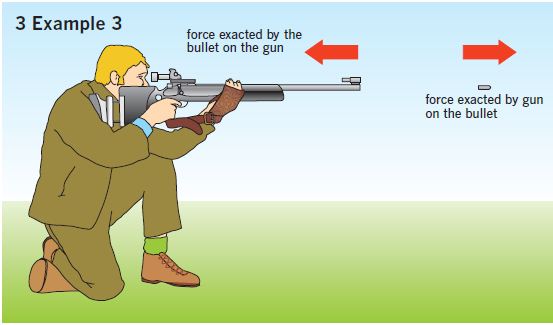 تفنگ نیرویی به سمت جلو به گلوله وارد می کنه، طبق قانون سوم نیوتن ، گلوله هم نیرویی دقیقا به همون اندازه به تفنگ به سمت عقب وارد می کنه و برای همینه که گفته میشه که تفنگ به سمت عقب به شلیک کننده لگد میزنه!
