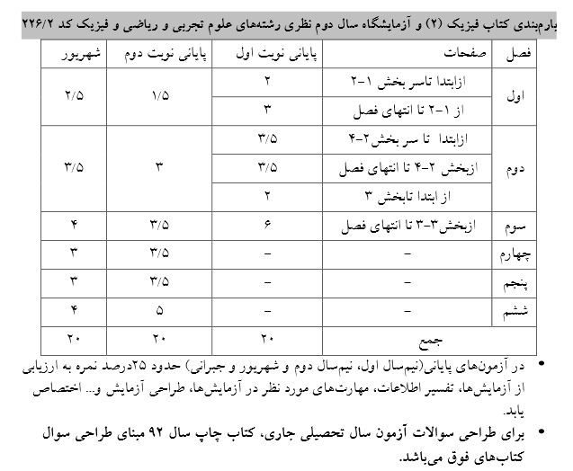 اینم از بارم بندی کتاب فیزیک 2 برای نوبت اول و دوم و شهریور...که البته امیدوارم بارم بندی شهریور به دردتون نخوره!